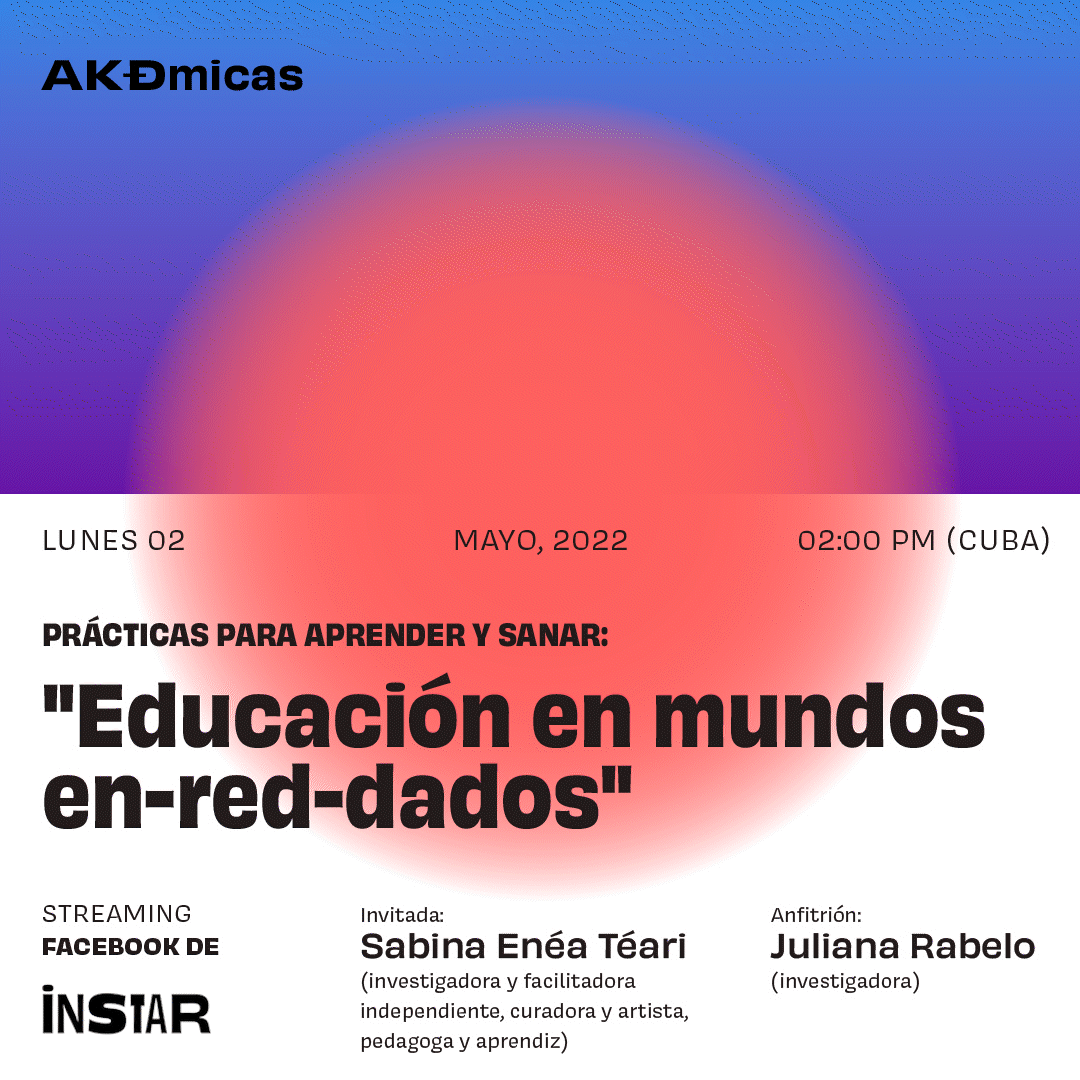 Sabina Enéa Téari es una investigadora y facilitadora independiente, curadora y artista, pedagoga y aprendiz, que trabaja entre las transversalidades emergentes de lo cultural, lo educacional y las prácticas artísticas. Es miembro fundadora de Foresta Collective y Foresta Kids, colectivos transdisciplinares fluidos, diseñando y facilitando formatos experienciales, dedicados al cultivo en colectivo de futuros ecológicos, a través de estrategias de concientización, interacción y cuidado.