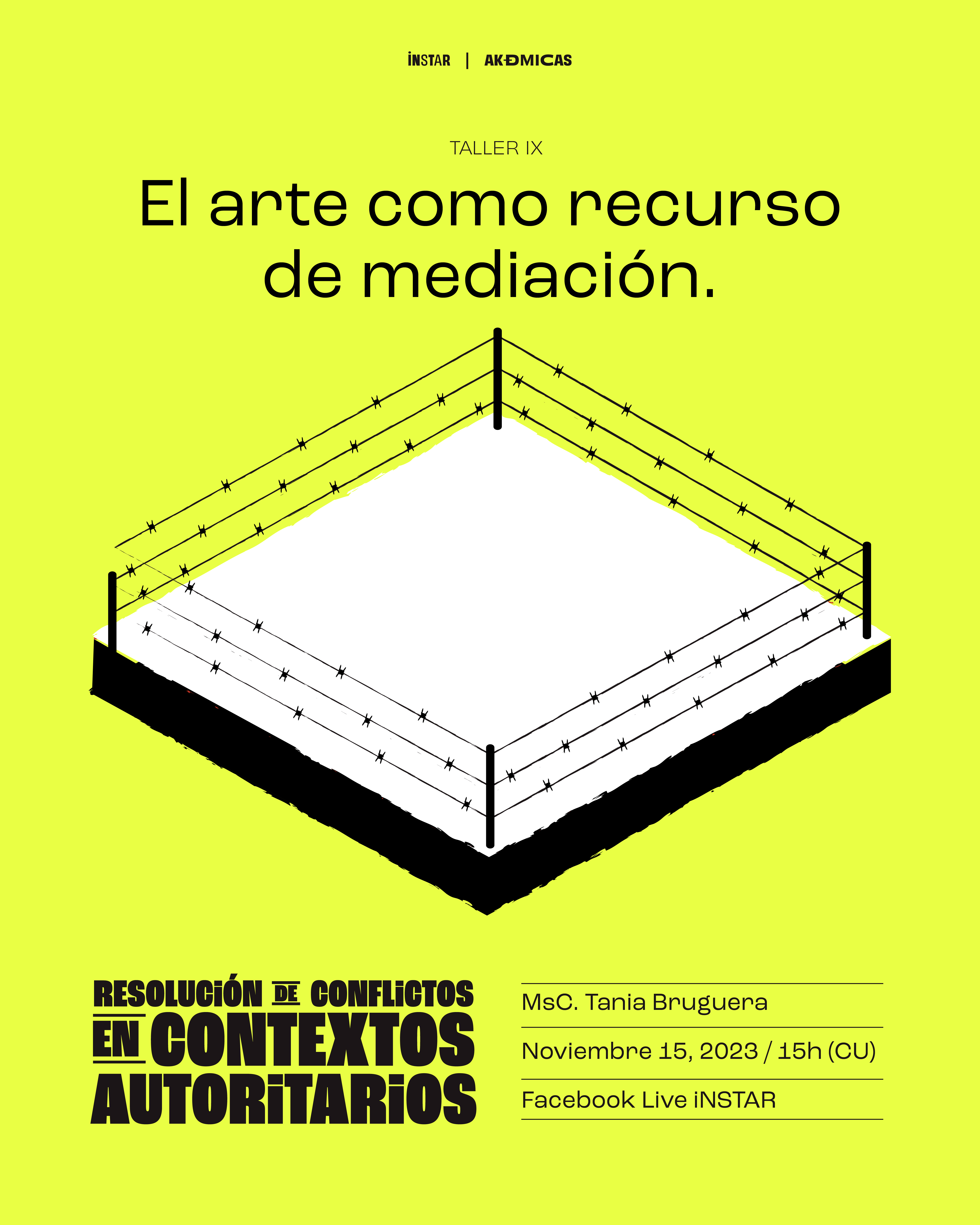 In today's meeting, the visual artist Tania Bruguera will share her experiences in using art as a mediation resource in authoritarian contexts.