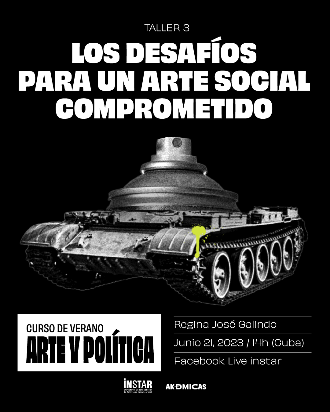 In today's program, the artist Regina José Galindo will bring us closer through the analysis of her artistic production to the challenges that social art presents in the Latin American region.