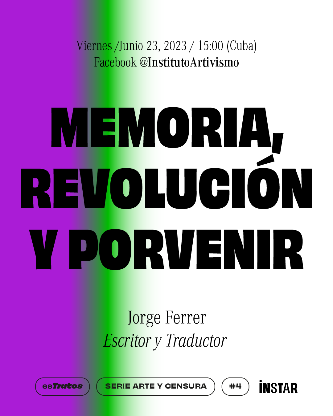 Conversation with Cuban writer, columnist and translator Jorge Ferrer. In the talk, Ferrer spoke of his relationship with memory through the work of the translator, as well as the need to rescue the history of the present with an explicit view to the future, always emphasizing the victims. He also argued that literature focused on the rescue of memory in post-59 Cuba is not enough. The guest told how he experienced the changes that ended with the dismantling of the USSR in the 1980s, his return to Cuba and his participation in the founding of the Paideia group. He also spoke of the urgency of working with the past and clarifying it to ensure its non-repetition in a democratic Cuba.