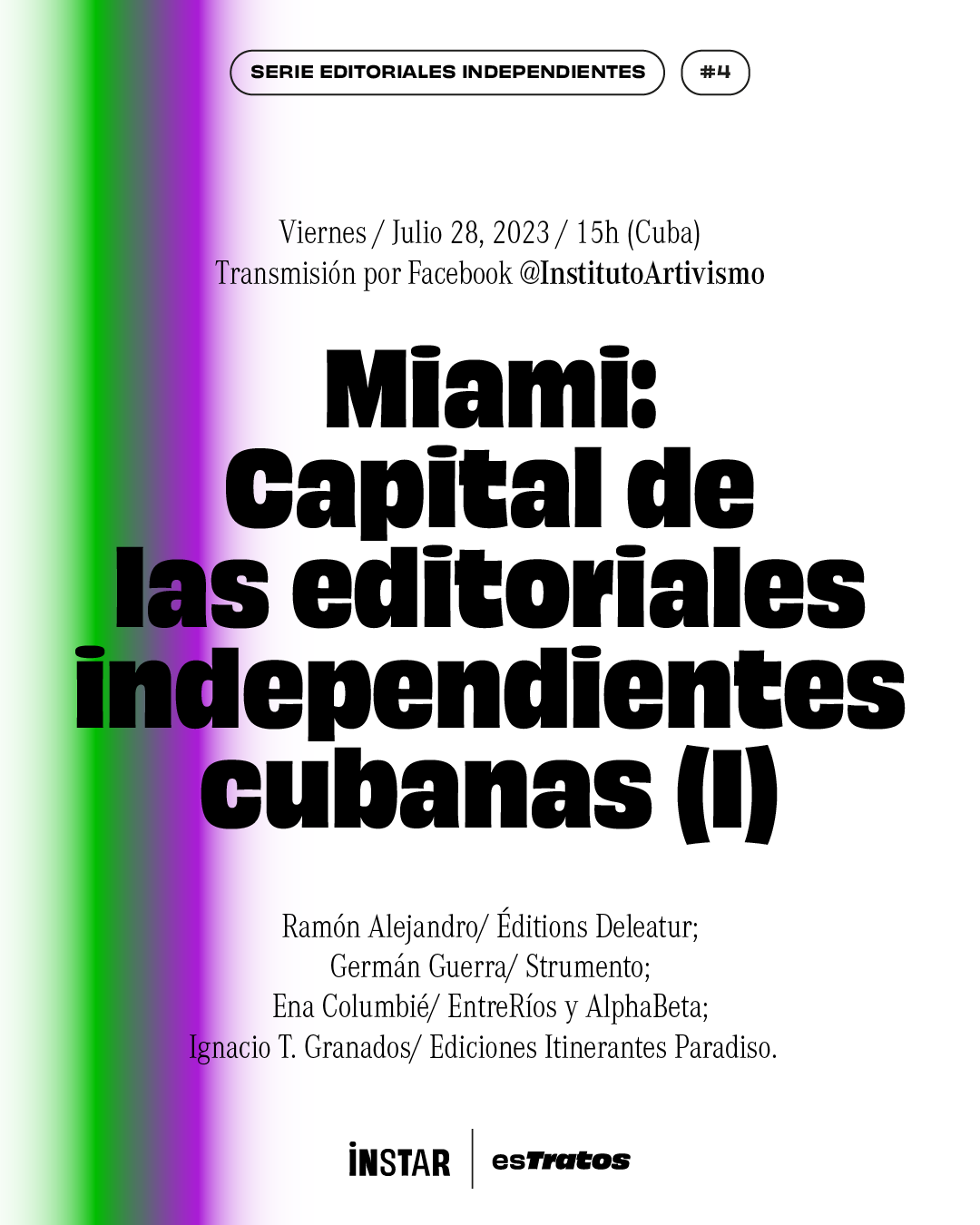 Conversación con Ramón Alejandro/ Éditions Deleatur; Ena Columbié/ EntreRíos y AlphaBeta; Ignacio T. Granados/ Ediciones Itinerantes Paradiso; y Germán Guerra/Strumento y EntreRíos sobre sus proyectos y el panorama editorial entre siglos.