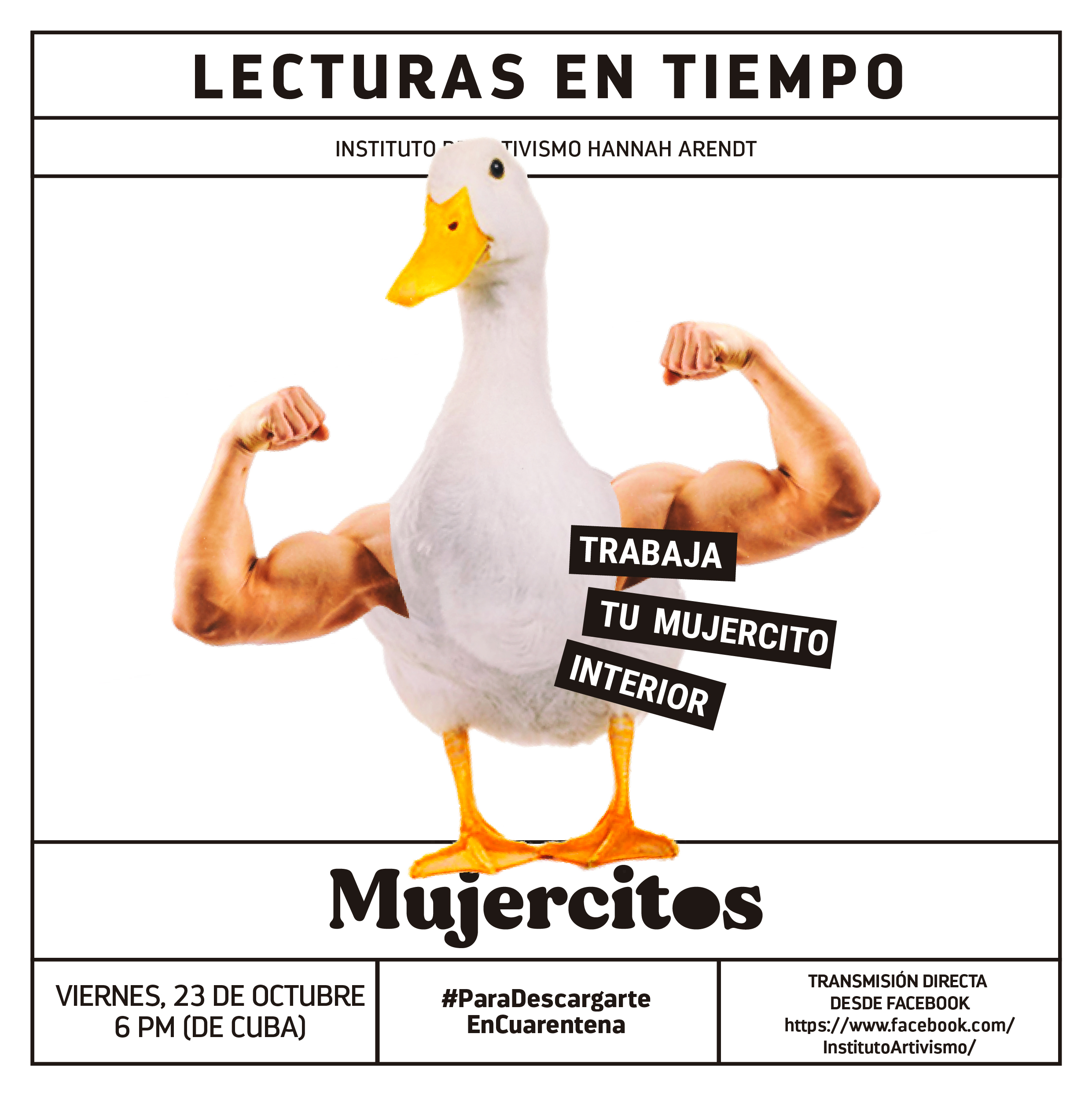 Mujercitos se funda en La Habana, a mediados del 2020. Mujercitos es un colectivo artístico. Aunque Mujercitos tenga escritores, no es literatura. Aunque Mujercitos publique en las redes, no es un medio de comunicación. Mujercitos es Mujercitos. No le gustan los medios, le gustan los extremos. Mujercitos usa la escritura visual, textual y paratextual para «cosas que te callas»; usa la performatividad para que las palabras se conviertan en gestos y los gestos en disparos para matar el tiempo muerto. En Mujercitos las palabras y las imágenes son piezas únicas, inseparables, insoportables. El vómito es su medio de expresión. El vómito es la libertad.
